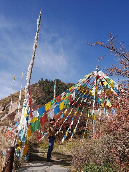 山上的千佛洞掛滿藏傳佛教的經幡;