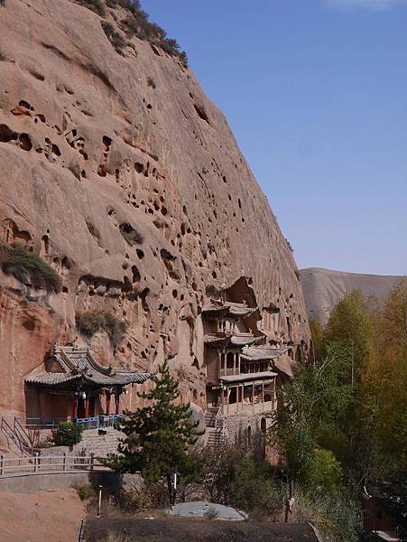 如果你不願去懸空寺人擠人,來馬蹄寺石窟的千佛洞造訪也能感受到凌於空中的佛寺。