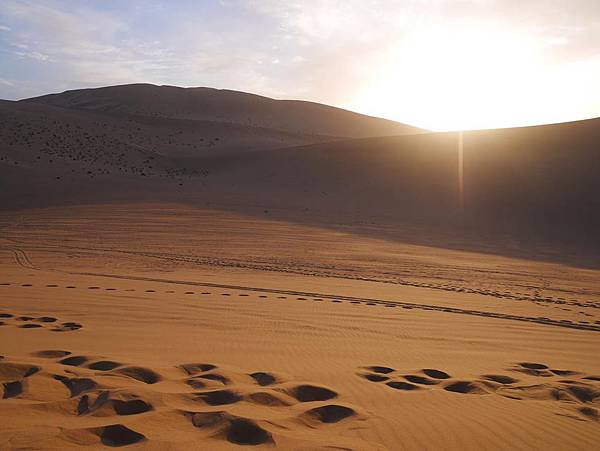 太陽下山後很快天就黑了,所以太陽躲在沙山後就請盡快地下山,以免摸黑下山會危險唷!